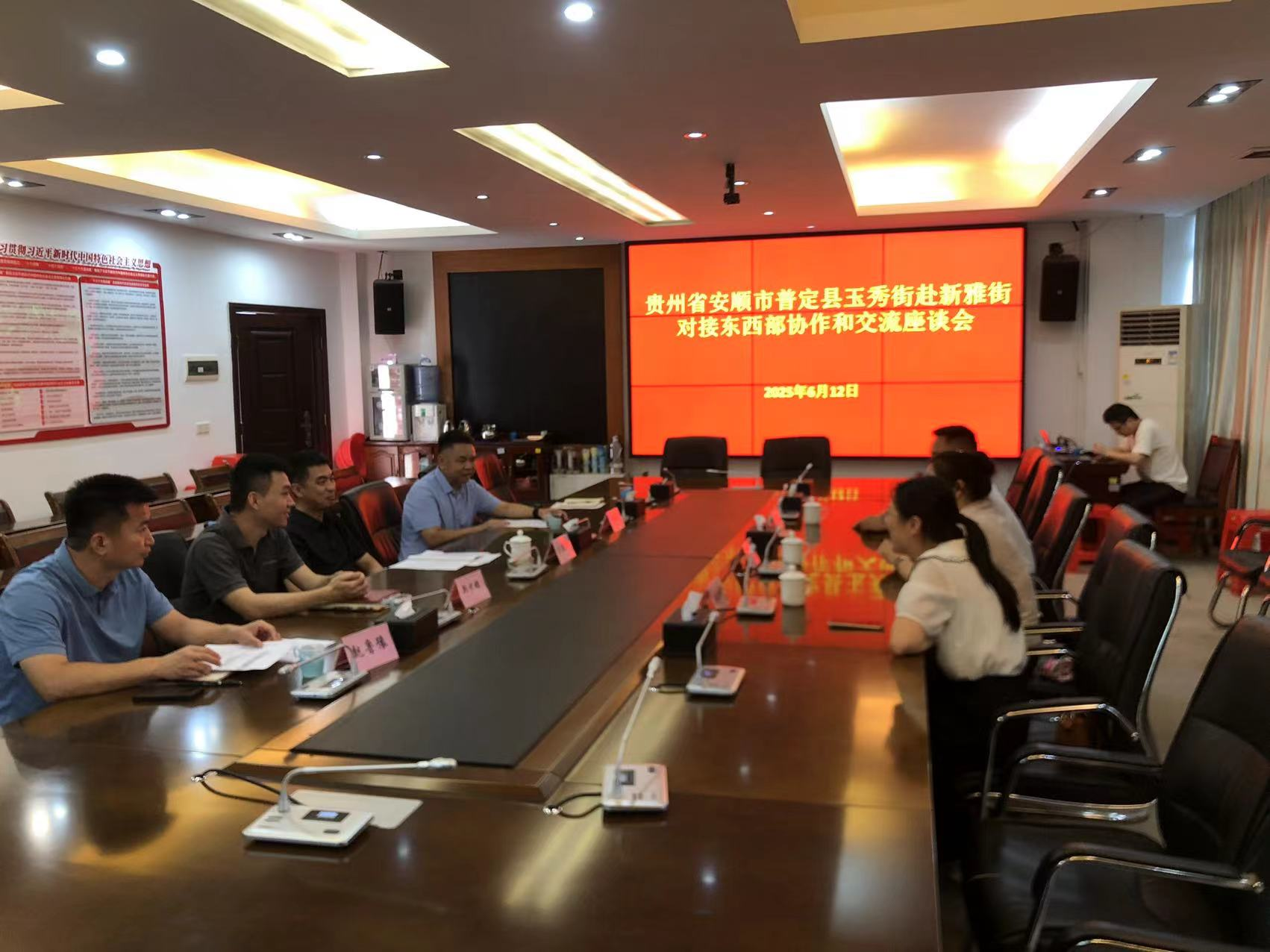 6月12日,贵州省安顺市普定县玉秀街党政代表团开启对花都区新雅街的回访之旅,新雅街主要负责人热情欢迎代表团一行的到来。