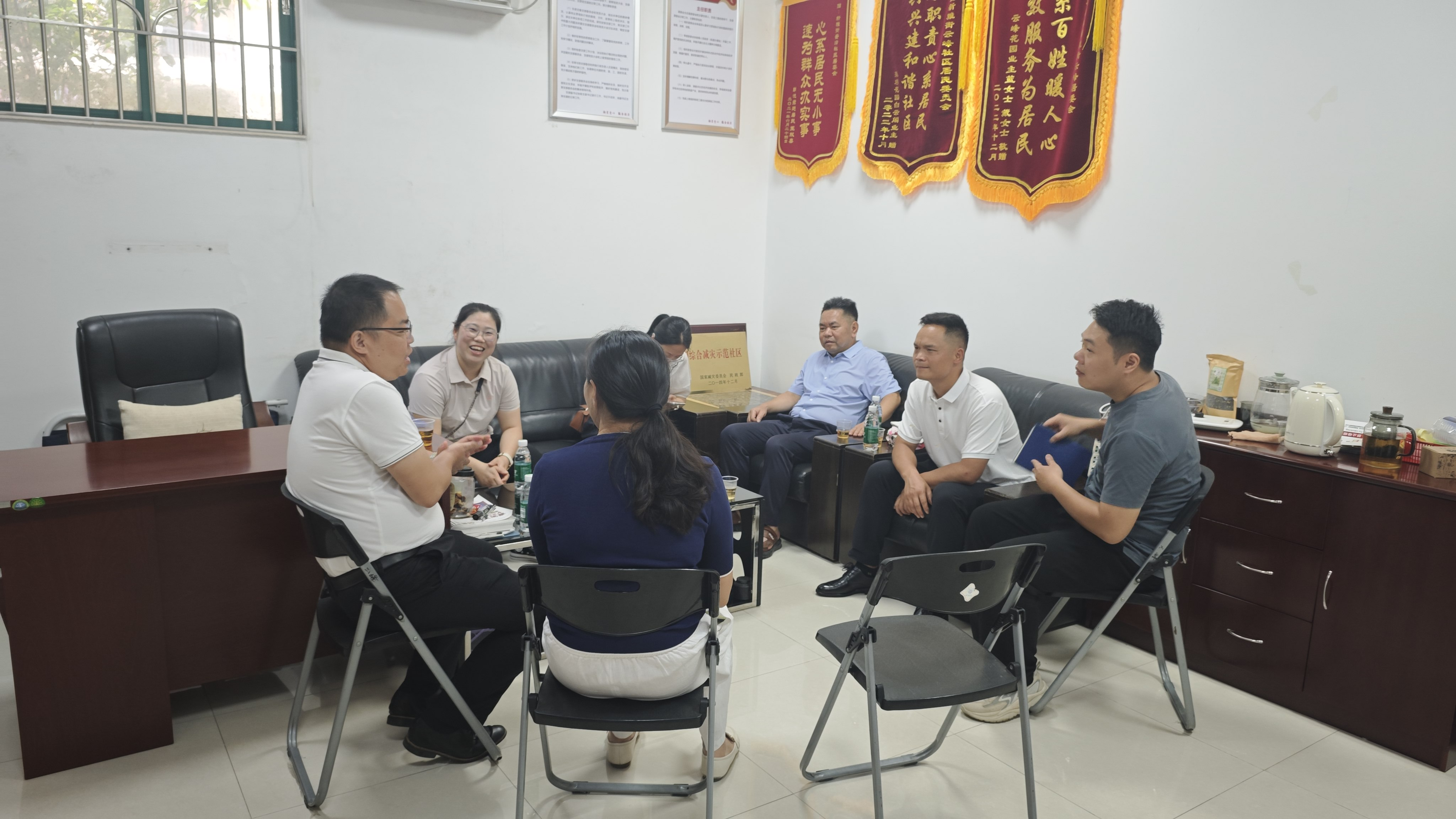 玉秀街代表团首站到访新雅街云峰社区,与物业管理部门围绕社区精细化治理、服务创新等展开交流,借鉴发达地区基层管理经验。